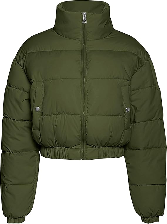 Women's Cropped Puffer Jacket Quilted Lightweight Stand Collar Full Zip Winter Warm Padded Jacket Outwear