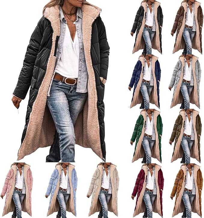 Womens Long Reversible Fleece Jacket Long Sleeve Jackets Zip Up Hoodie Pockets Warm Winter Coat Outerwear