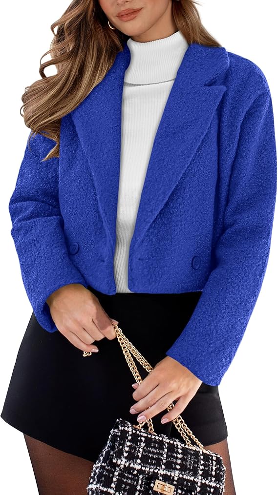 Women's Cropped Fuzzy Fleece Jacket Lightweight Lined Winter Casual Warm Sherpa Jacket Coat Outerwear with Pockets