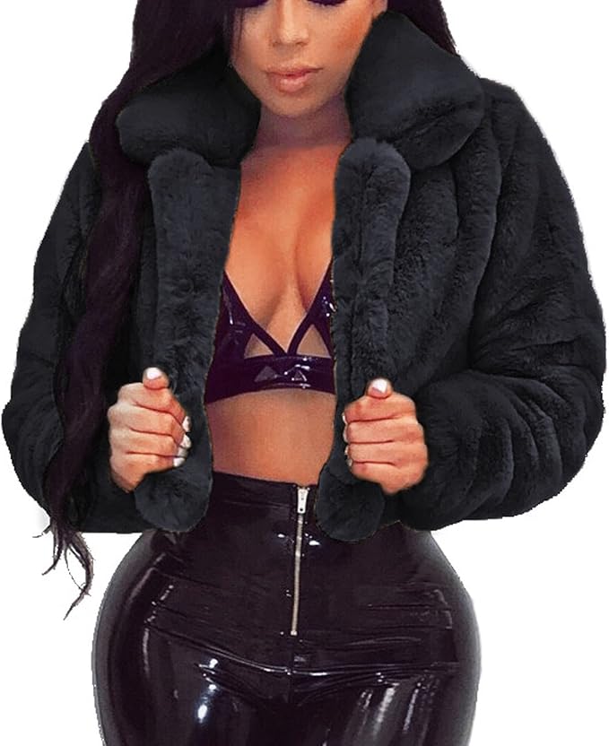 Fur Coat for Women,Faux Furry Long Sleeve Cropped Fluffy Jacket Shaggy Warm Winter Outerwear