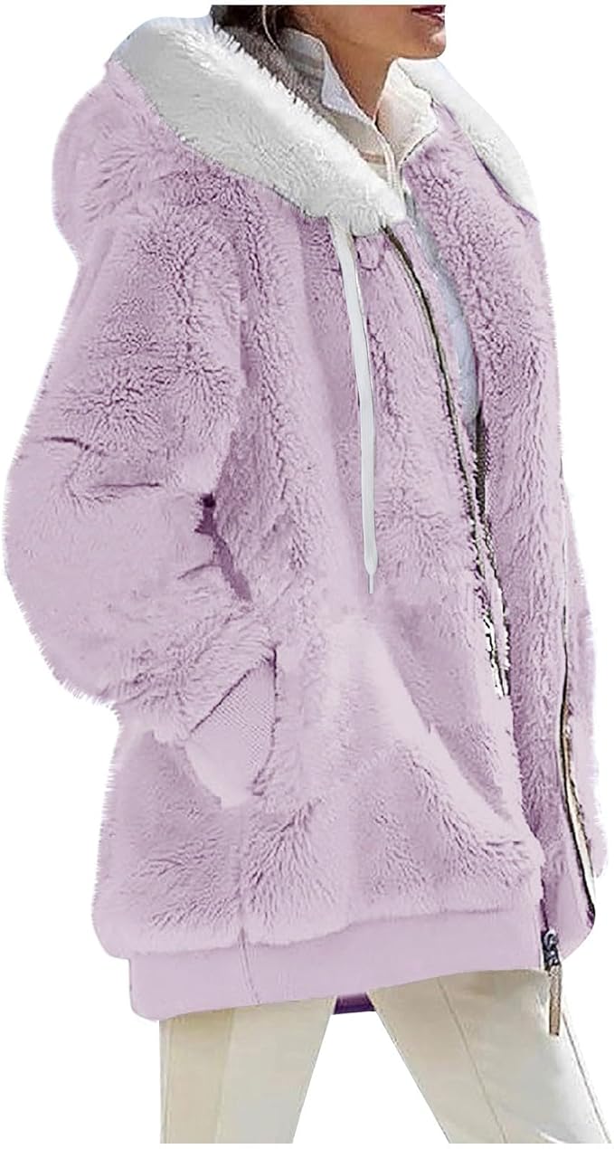 Winter Coats for Women Casual Zip Up Sherpa Jacket Long Sleeve Fleece Warm Jacket Hooded Fur Coats Outerwear