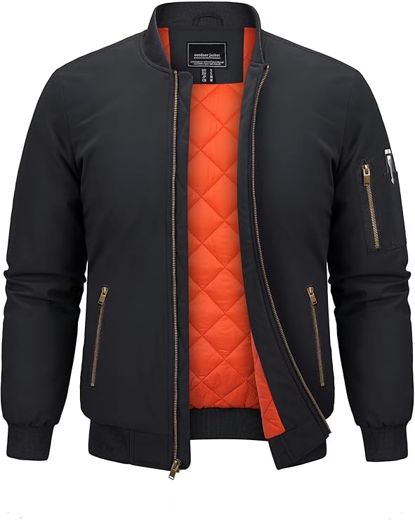 Men's Bomber Jackets Winter Zip Up Midweight Thick Warm Lining Windproof Casual Style Windbreaker Coats