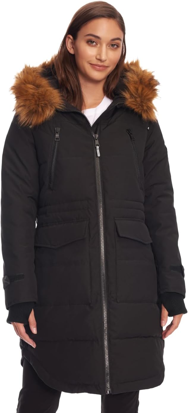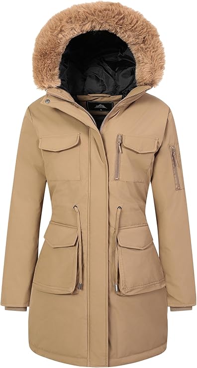 Women’s Vegan Down Drawstring Winter Parka - Water Repellent, Windproof, Insulated Jacket with Faux Fur Hood